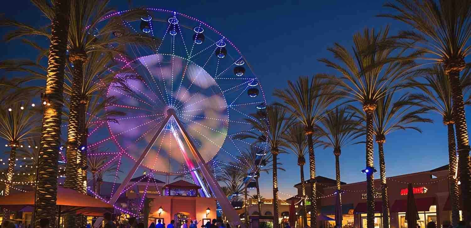 Irvine Spectrum Center is a vibrant hub for shopping, dining and entertainment. Enjoy a giant Ferris wheel, live events, and group-friendly spaces, all with easy parking in a lively, family-friendly atmosphere.